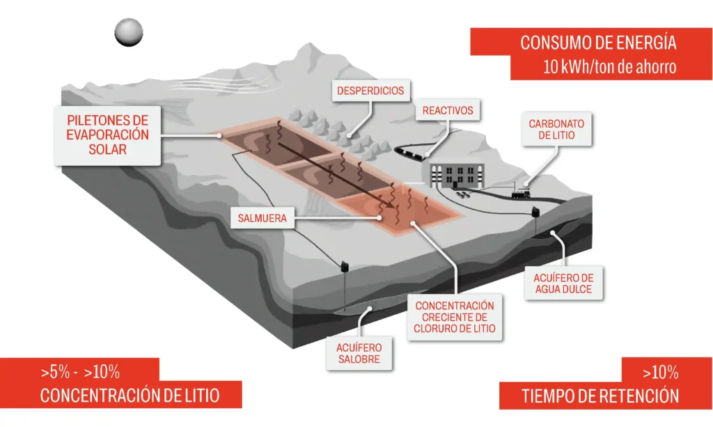 Un Gemelo Digital con IA optimiza pozas de evaporación de litio, integrando variables meteorológicas, de salmuera y operacionales. Reduce tiempos, eleva concentraciones y evita sedimentaciones mediante monitoreo en tiempo real, simulaciones de reacción y análisis predictivo. Genera recomendaciones operativas para ajustar parámetros y maximizar la recuperación, con control continuo integral.